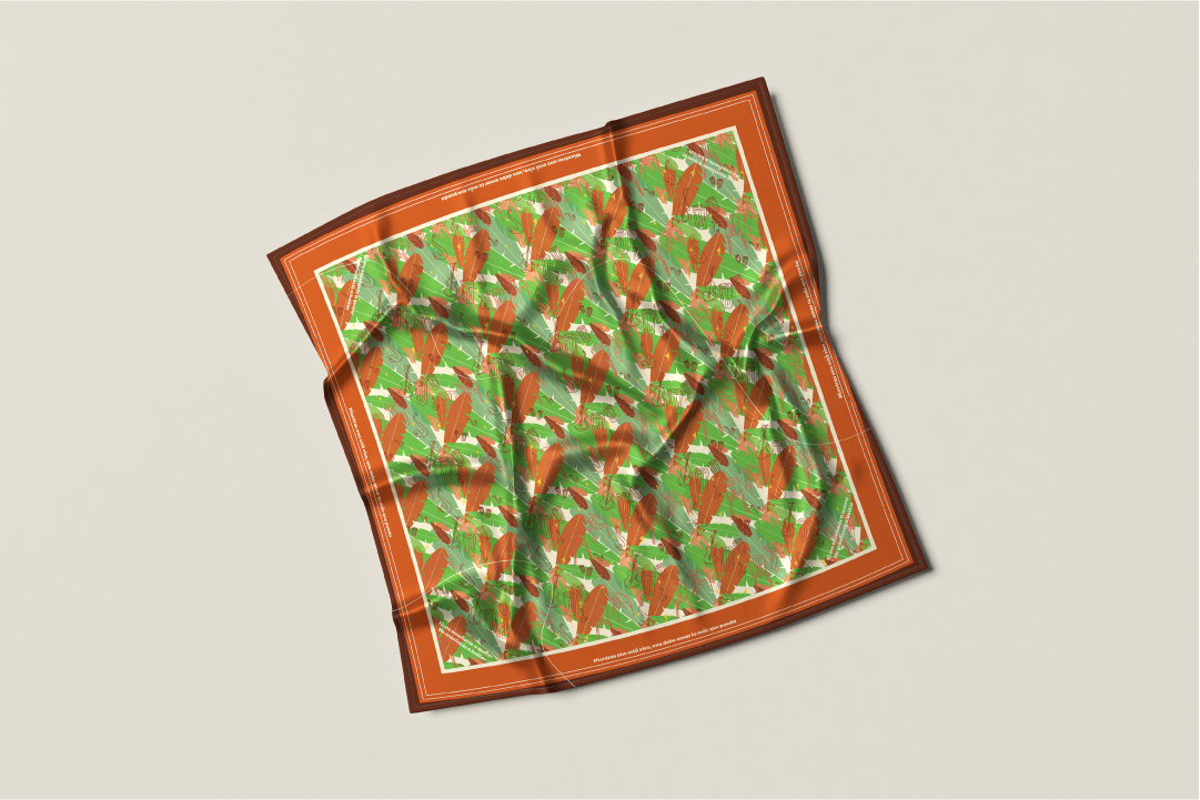 Este pañuelo está inspirado la Salsa, con colores vibrantes, principalmente naranjas, transmiten toda la energía y la vibra salsera.