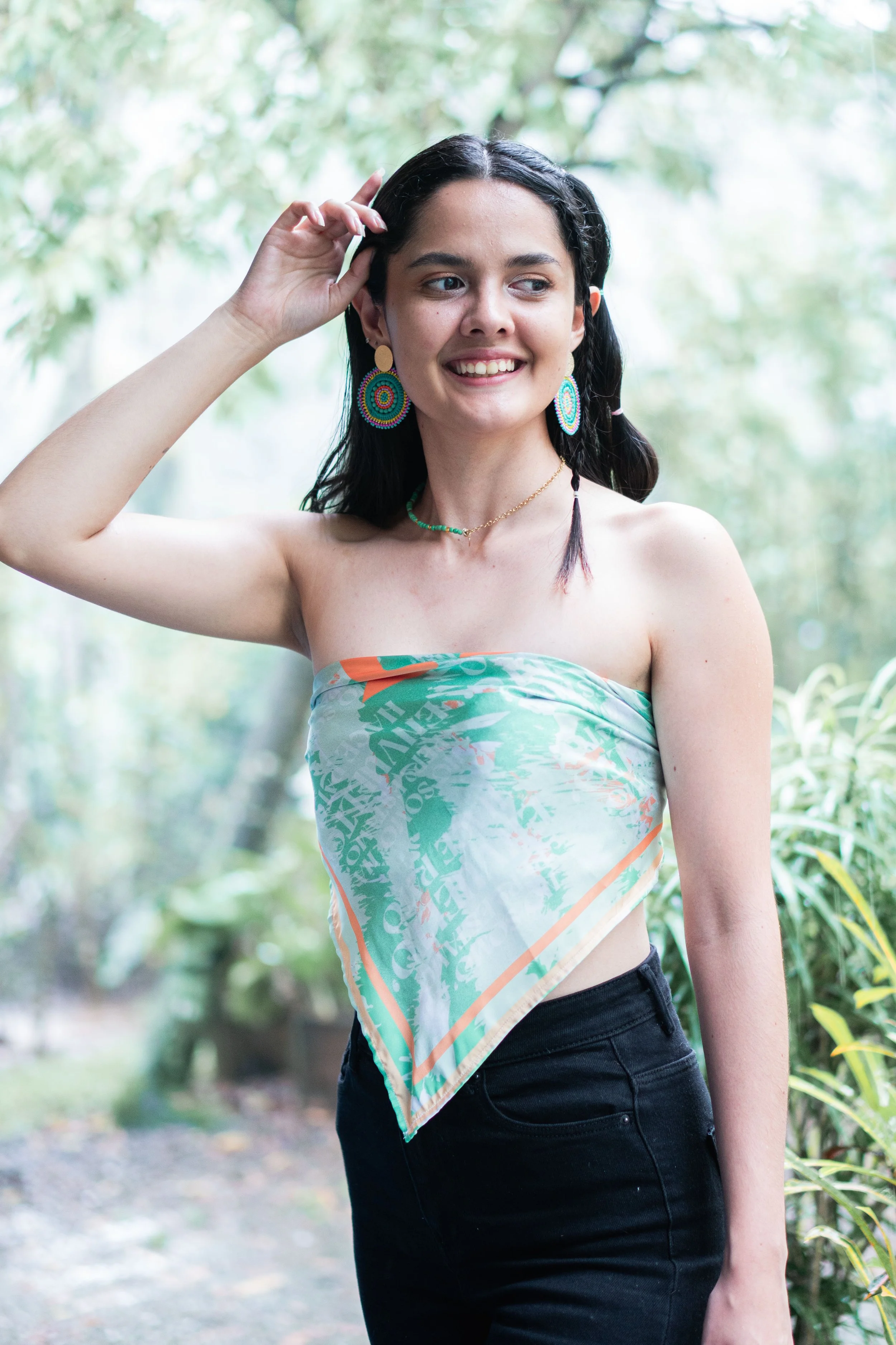 Este pañuelo está inspirado en la canción Ojitos Lindos de Bad Bunny y Bomba Estéreo. Una pieza que captura esa sensación de calma que solo se encuentra cuando mirás a alguien con quien te sentís en casa.